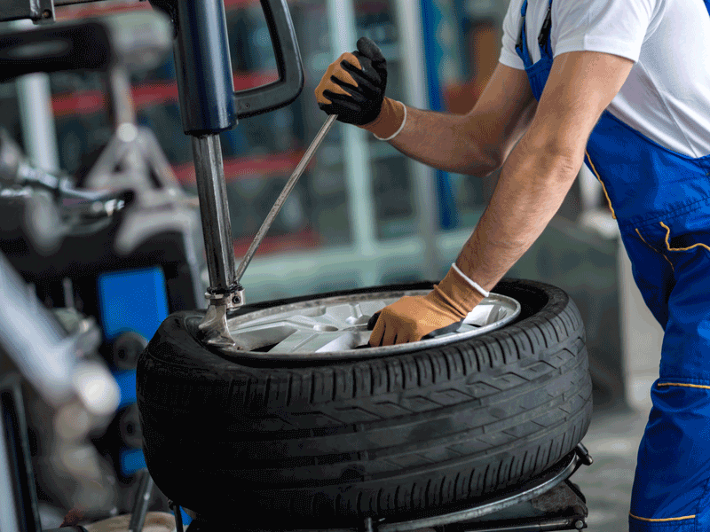MONTAGE –  Les anciens pneus sont dĂ©montĂ©s et les nouveaux sont montĂ©s avec un Ă©quipement adaptĂ©.